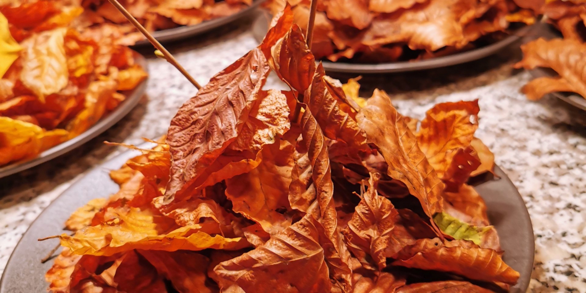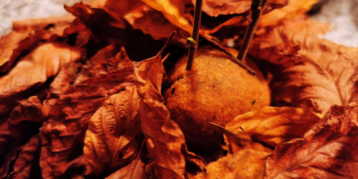 „Herbstlaub des Waldes“ – warmes Falaffel-Bällchen mit einem Kern aus pulled Wildschwein und Steinpilzen